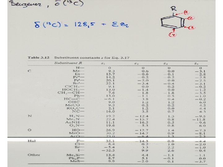 Chemical shift - Inductive effects in alkanes - Anisotropy - Inductive effects in alkenes - δ values for different groups - 13 C chemical shift in different groups - Solvents - Rotation