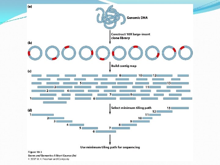 Genomic DNA Sequencing Whole genome sequencing is still difficult. There were questions about how to collect, catalog, and assemble very large numbers of sequencing reads, especially with the repetitive sequences through out the genome. The computer programs for sequence assemble were not capable of handling the extremely large number of sequencing reads. Early 1990, the “map-based ” strategy was employed to sequence S. cerevisiae and c. elegans.