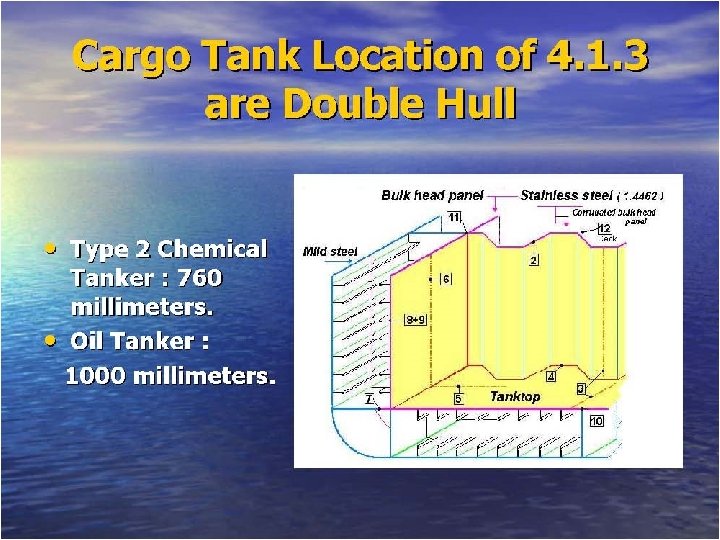 Chemical Tankers Types 1. ‘Type 1’ ship is a chemical tanker intended to transport Chapter 17 of the IBC Code products with very severe environmental and safety hazards which require maximum preventive measures to preclude an escape of such cargo. 2. ‘Type 2’ ship is a chemical tanker intended to transport Chapter 17 of the IBC Code products with appreciably severe environmental and safety hazards which require significant preventive measures to preclude an escape of such cargo. 3. ‘Type 3’ ship is a chemical tanker intended to transport Chapter 17 of the IBC Code products with sufficiently severe environmental and safety hazards which require a moderate degree of containment to increase survival capability in a damaged condition. [2]