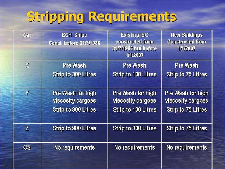 3 Main Cargo Groups l Animal and vegetable oils and fats (washing with Na. OH or KOH – SS tanks or EP (epoxy coated) mandatory rinse with warm water) l Mineral oils (washing with a mixture of water, detergents, emulsifiers and synthetic soap, sometimes a supplement of base gasoline should be used – FW rinsing is obligatory because of HC l Petrochemical solutions (for a products and other cargoes with a low dew point evaporation - cargoes with a dew point over 100 °C should be washed with petrochemical solvents, hot water and steam)