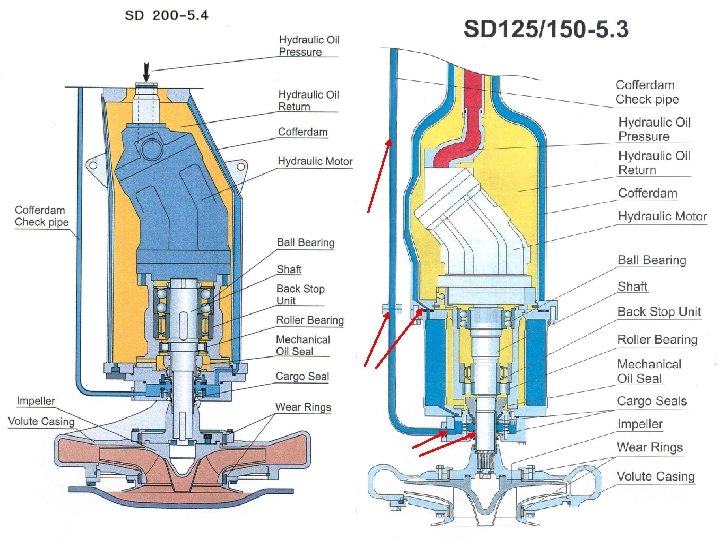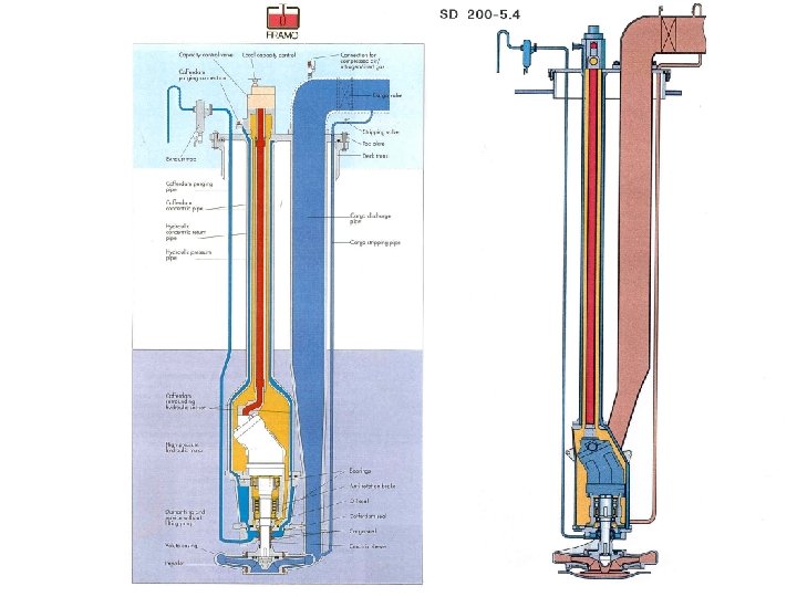 Pumpe tereta (Cargo pumps) • Jednostepene ili višestepene – single or multistages • Uronjena pumpa s dugom osovinom (deepwell pump) – el. mot. or hydromotor on the deck connected with the pump w. long shaft • (submersiblle) – hydromotor or el. motor together with the pump into tank • Prijenosna uronjena pumpa – portable submersible pump