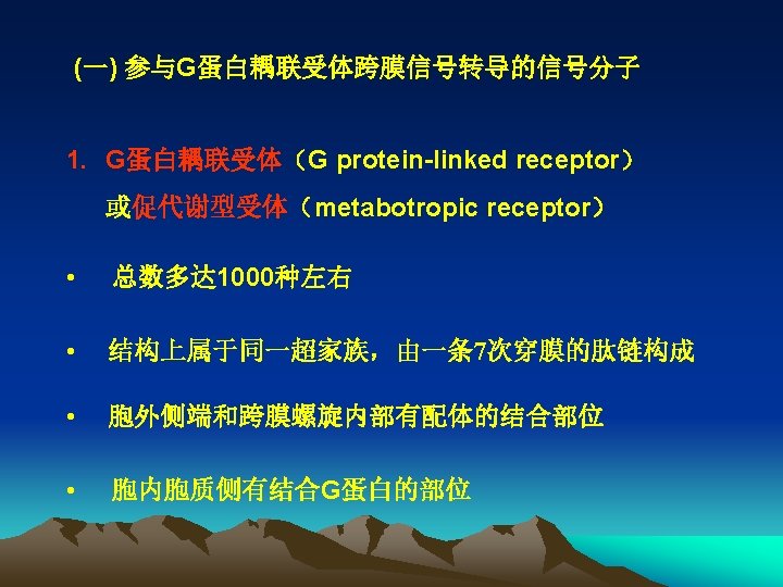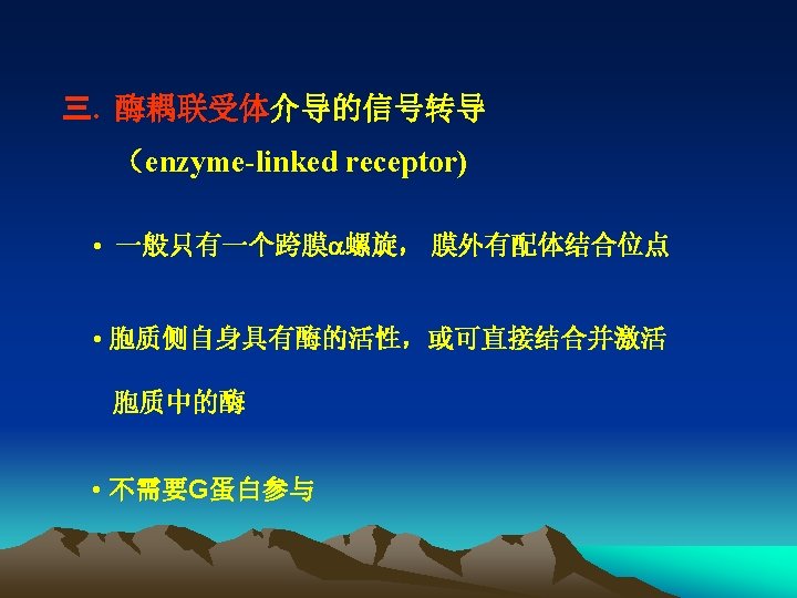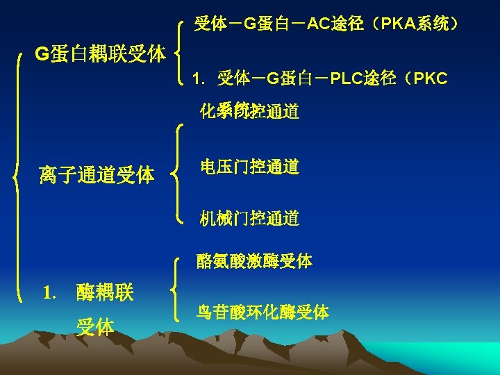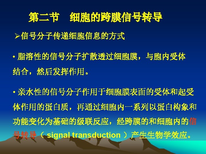 chemicallygated ion channel ligandgated ion channel transmittergated ion Slides: 16 Download presentation 二. 离子通道受体介导的信号转导 • 化学门控通道 (chemically-gated ion channel) 或配体门控通道 (ligand-gated ion channel) 或递质门控通道 (transmitter-gated ion channel) 或促离子型受体(ionotropic receptor) • 电压门控通道 (voltage-gated ion channel) • 机械门控通道 (mechanically-gated ion channel) 信号网络 (signaling network ) 串话(cross-talk)