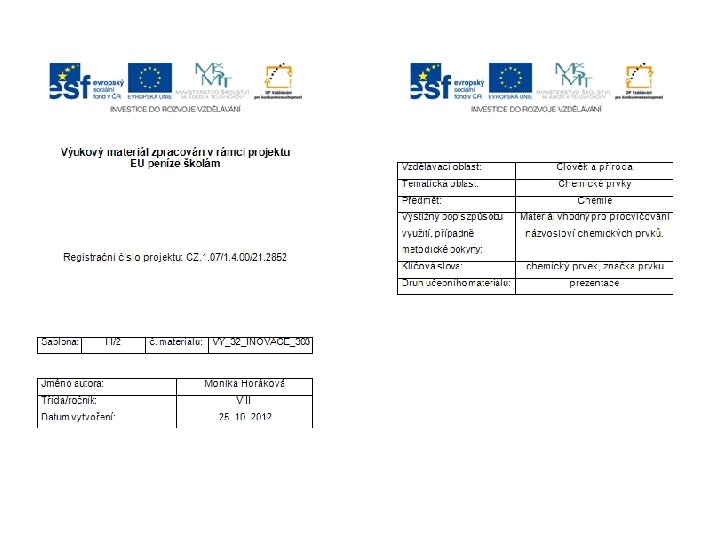 CHEMICK PRVKY NZEV PRVKU O 2 ESK ZNAKA Slides: 20 Download presentation CHEMICKÉ PRVKY NÁZEV PRVKU O 2 ČESKÝ ZNAČKA PRVKU LATINSKÝ Doplň chybějící údaje: Argon _____ Arsenicum As Beryllium __ Bor _____ Bromum Br Cín Stannum __ Draslík ______ K _____ Nitrogenium N Fluorum _ ______ Phosphorus P Helium __ ______ Aluminium Al Hořčík Chlor _________ Chlorum Chromium Mg __ Cr ___ Iodum I Kobalt Cobaltum __ Křemík _ _ _ _ Si ______ Oxygenium O Lithium __ Manganum __ ___ Cuprum Cu _ _ _ _ Molybdaenum Mo Neon __ ____ Niccolum Ni _____ Plumbum Pb Osmium ______ Os Platina Platinum __ ____ Hydrargyrum Hg Síra Sulfur _ Sodík Natrium __ _______ Argentum Ag Tellurium __ _____ Carboneum C Vápník Calcium __ Vodík Hydrogenium _ _______ Wolframium W Zinek Zincum __ Zlato _____ Au Železo Ferrum __ Správné řešení: Argon Ar Arsenicum As Beryllium Be Borum B Bromum Br Cín Stannum Sn Draslík Kalium K Dusík Nitrogenium N Fluorum F Fosfor Phosphorus P Helium He Hliník Aluminium Al Hořčík Magnesium Mg Chlorum Cl Chromium Cr Jod Iodum I Kobalt Cobaltum Co Křemík Silicium Si Kyslík Oxygenium O Lithium Li Manganum Mn Měď Cuprum Cu Molybden Molybdaenum Mo Neon Ne Nikl Niccolum Ni Olovo Plumbum Pb Osmium Os Platina Platinum Pt Rtuť Hydrargyrum Hg Síra Sulfur S Sodík Natrium Na Stříbro Argentum Ag Tellurium Te Uhlík Carboneum C Vápník Calcium Ca Vodík Hydrogenium H Wolframium W Zinek Zincum Zn Zlato Aurum Au Železo Ferrum Fe