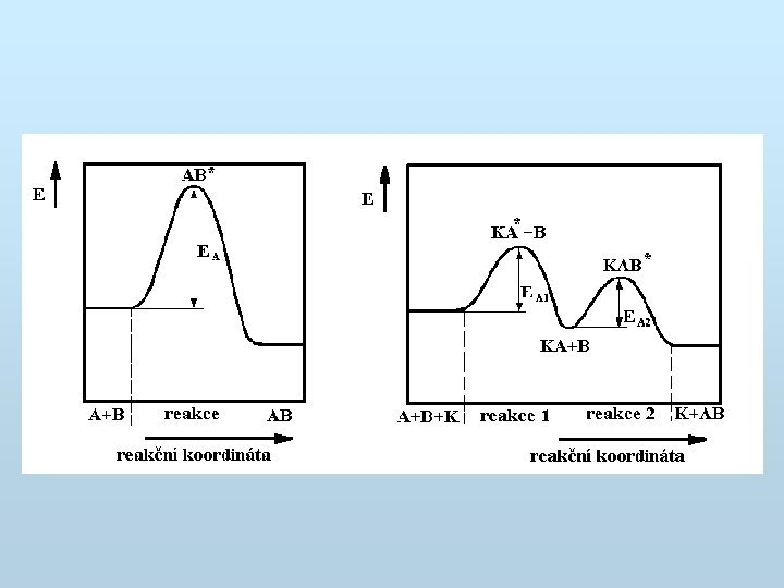 Průběh reakce Obecný průběh reakce A + B AB Průběh reakce s katalyzátorem A + K AK AK + B AB + K