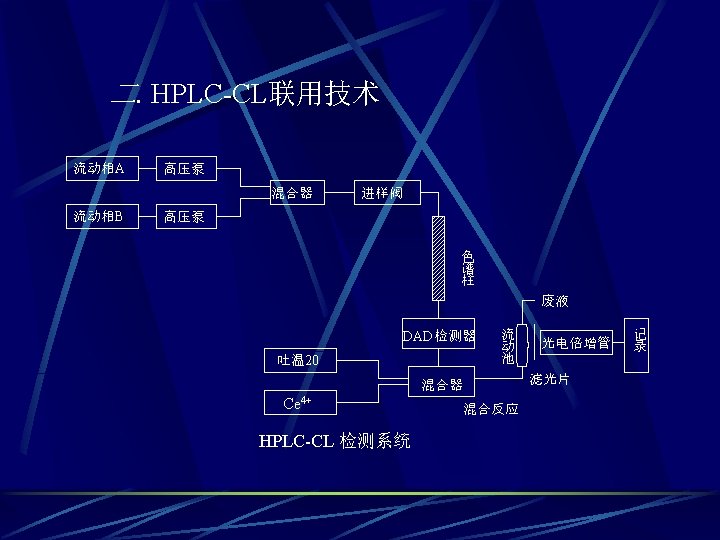 分析化学应用 一、 流动注射化学发光分析 Hua Cui , Shifeng Li, Xiangqin Lin Chemiluminescence of Ce (IV) and surfactant Tween 20 Analyst, 2001, 126, 553 Hua Cui , Shifeng Li, Feng Li, Yugang Sun, Xiangqin Lin A novel chemiluminescent method for determination of salicylic acid in bactericidal solutions Analytical and Bioanalytical Chemistry, 2002,372,601