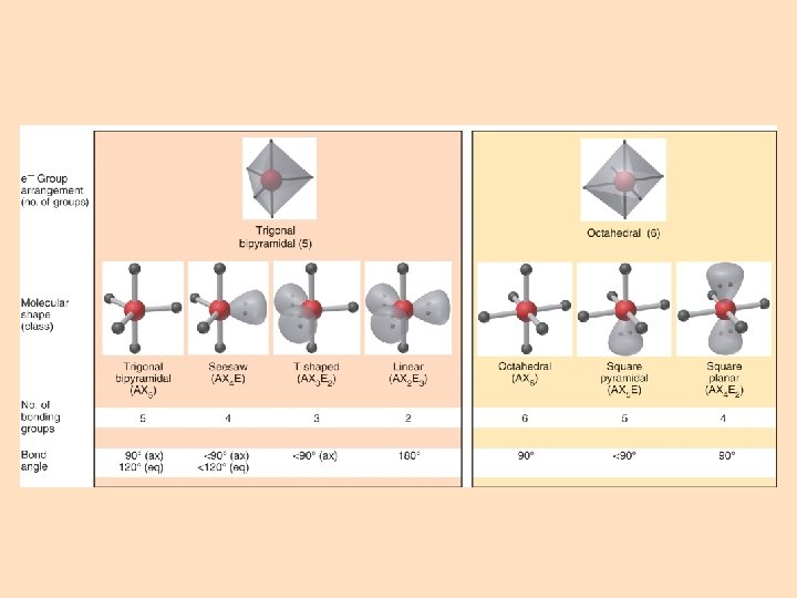 Electron-group repulsions and molecular shapes. linear trigonal bipyramidal trigonal planar tetrahedral octahedral