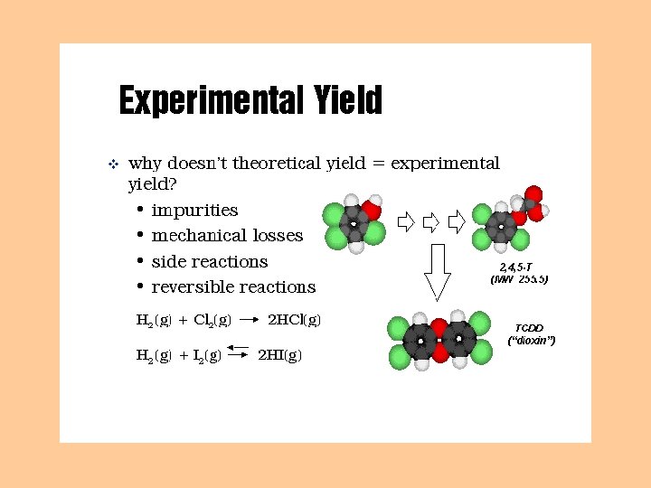 Percent Yield % yield = actual yield (experimental) theoretical yield X 100% What percent of the perfect amount did you obtain (taking into account human/mechanical error)