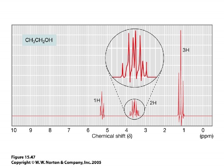 Higher Resolution Shows Splitting Advantage of “similarity” of protons (unlike IR where various modes have very different changes in dipole moment, and thus very different signal strengths) 1959 http: //www. wooster. edu/chemistry/is/brubaker/nmr
