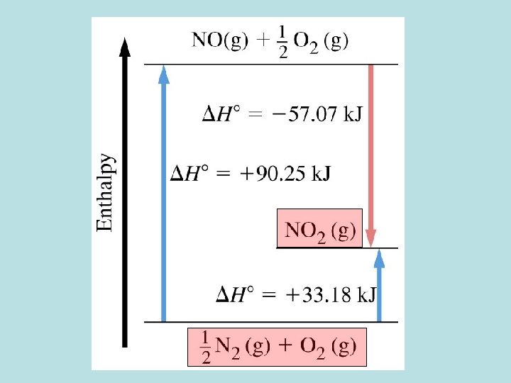 Standard Enthalpy of Formation C(s, graphite) + O 2(g) CO 2(g) DHf 0 = - 393. 51 k. J mol-1 C(s, graphite) + 2 H 2(g) CH 4(g) DHf 0 = - 74. 81 k. J mol-1 ½ N 2(g) + 3/2 H 2(g) 0 -1 NH 3(g) DHf = - 46. 11 k. J mol (1/2) N 2(g) + (1/2) O 2(g) NO(g) DHf 0 = + 33. 18 k. J mol-1