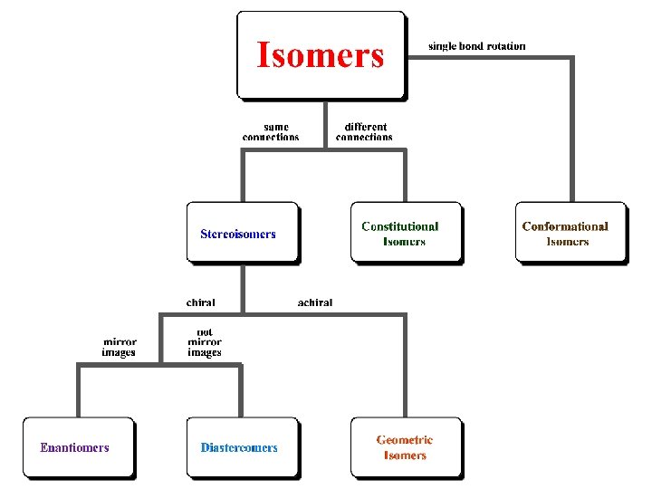 Enantiomers Objects that are nonsuperposable on their mirror images are chiral (from the Greek: cheir, hand). – They show handedness. The most common cause of enantiomerism in organic molecules is the presence of a carbon with four different groups bonded to it. – A carbon with four different groups bonded to it is called a stereocenter