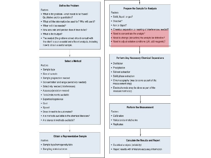 0 -2 General steps in a chemical analysis • An analysis involves several steps and operations which depend on: the particular problem your expertise the apparatus or equipment available. • The analyst should be involved in every step.