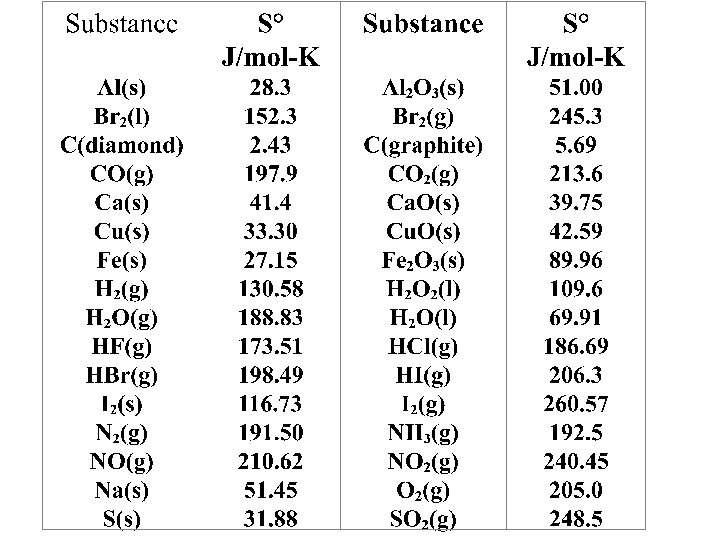 Substance S , J/mol K NH 3(g) 192. 8 O 2(g) 205. 2 NO(g) 210. 8 H 2 O(g) standard entropies from Appendix IIB 188. 8 Ex. 17. 4 –Calculate DS for the reaction 4 NH 3(g) + 5 O 2(g) 4 NO(g) + 6 H 2 O(l) Given: Find: DS, J/K Concept Plan: S NH 3, S O 2, S NO, S H 2 O, DS Relationships: Solution: Check: DS is +, as you would expect for a reaction with more gas product molecules than reactant molecules