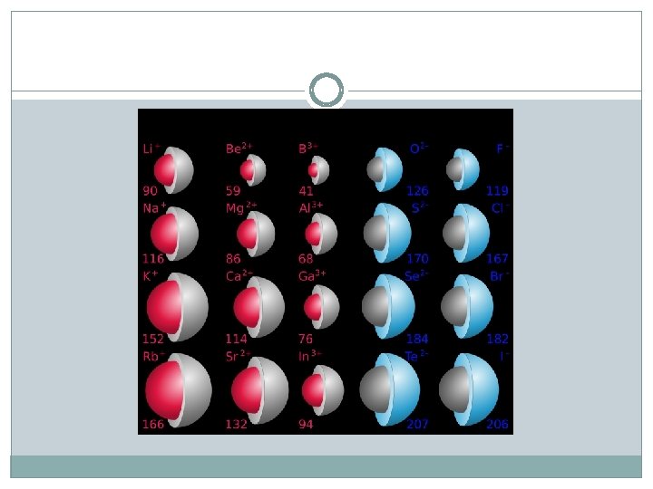 Ionic Radii Cations Anions Positively charged ions Smaller than the corresponding atom Negatively charged ions Larger than the corresponding atom
