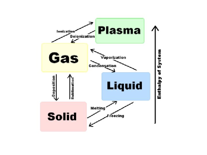 Phase Changes • There are six phase changes. – Solid to liquid is called melting. – Liquid to solid is called freezing. – Liquid to gas is called evaporation. – Gas to liquid is called condensation. – Solid to gas, without going through the liquid phase, is called sublimation. – Gas to solid, without going through the liquid phase is called deposition.