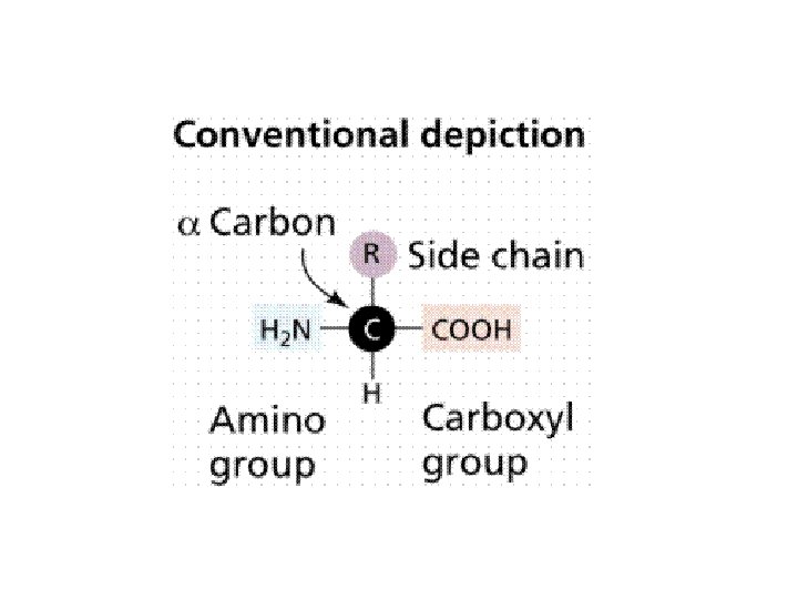 • Each amino acid contains: – an amino group – a carboxyl group – an R group, which distinguishes each of the 20 different amino acids Figure 3. 12 A Amino group Carboxyl (acid) group