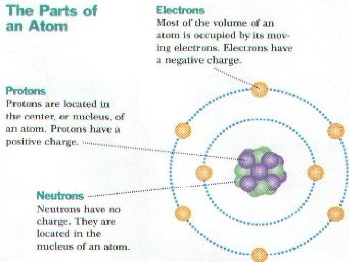 I. Matter and Atoms • Atom – the smallest particle of matter that cannot be broken down by chemical means. • Atoms are composed of three particles: electrons, protons, and neutrons.