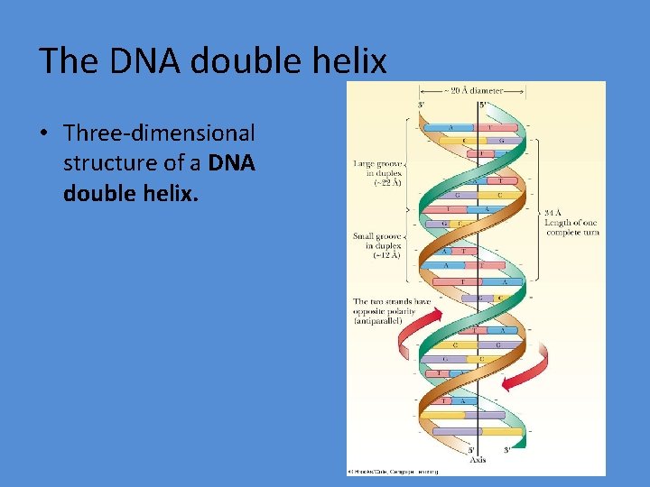 The DNA double helix • Three-dimensional structure of a DNA double helix.