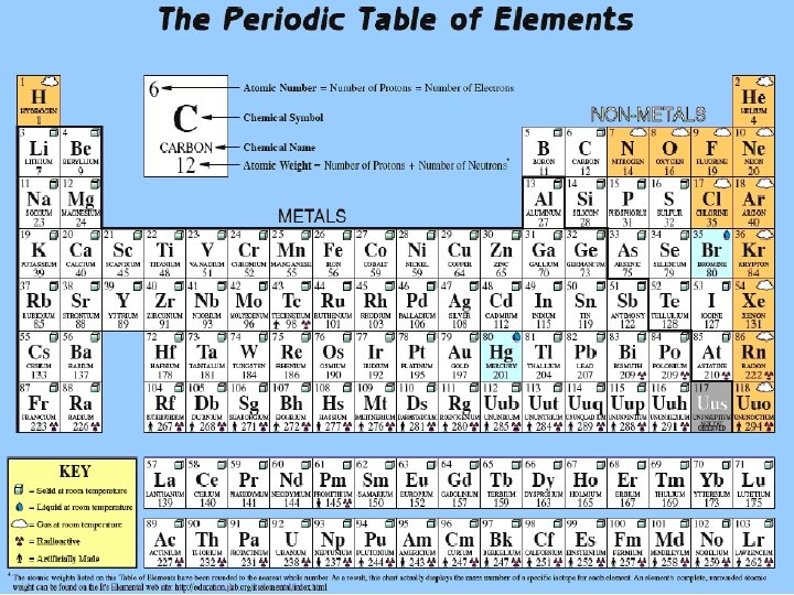 2. Periodic Table A. Atomic Number (number of protons) B. Atomic Mass (total of protons and neutrons) C. Isotopes – different number of neutrons ex. Carbon 12 usually has 6 protrons and 6 neutrons but Carbon 14 has 6 protons and 8 neutrons