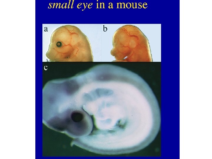 Mutations in mouse can cause Pax-2 defects in kidney optic nerve, retina Pax-3 neural crest defects Pax-6 small eye