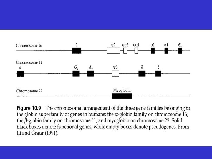 Loss of duplicate genes • A duplicate gene can become nonfunctional (a pseudogene) if there is no advantage to keep it. • Indeed, there are pseudogenes in every eukaryotic genome studied. Example: Globin pseudogenes in human