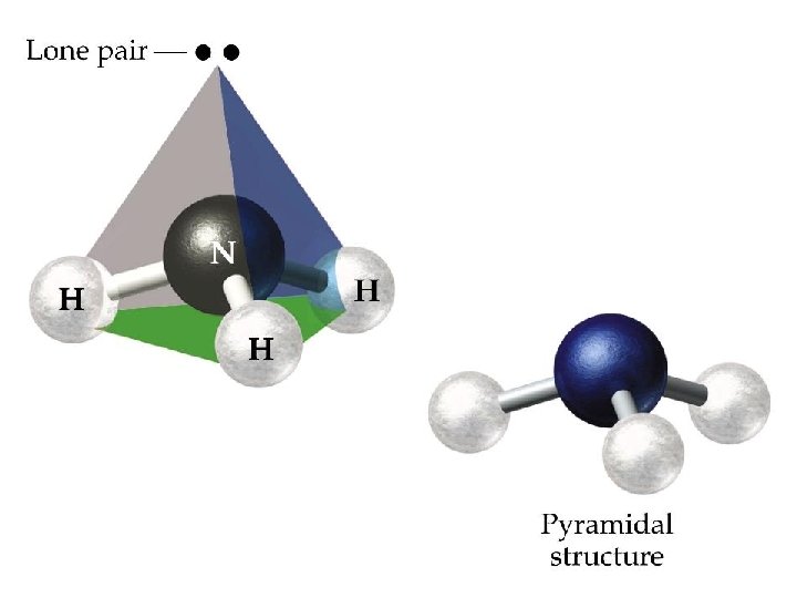 BASIC IDEAS Shapes of molecules and ions depends on total number of electron pairs around the central atom. Two types of electron pairs: • Bonding pairs (i. e. e-’s in a covalent bond) • Non-bonding pairs (i. e. lone pairs) These electron pairs repel as far as possible (but lone pairs repel more than bonding pairs).