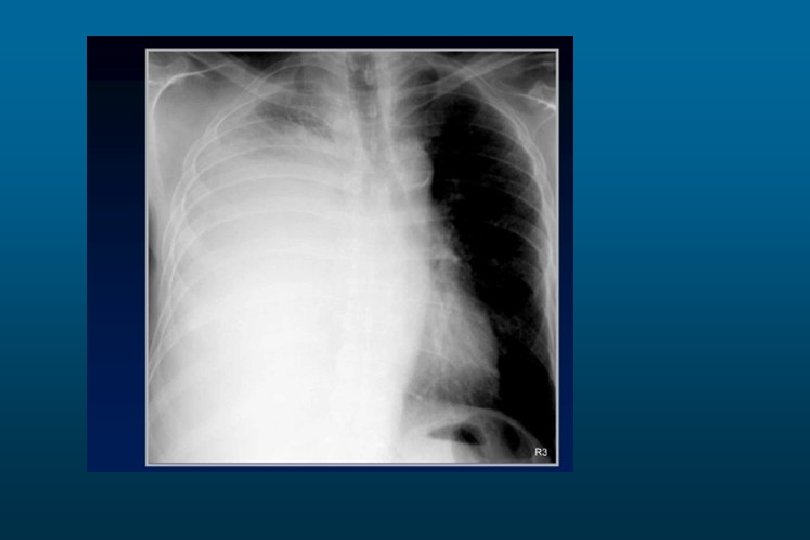 he right hemithorax is opaque There is a shift of the heart and trachea away from the side ofo pacification This is characteristic of apleural effusion