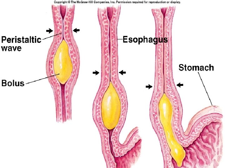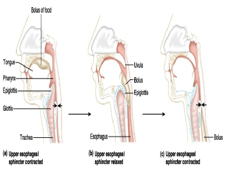 � � � The third stage is also involuntary 8 -20 seconds transmit time Start from the point where the bolus enters the oesophagus at the upper Oesophageal sphincter– Until the bolus passes into stomach at the lower Oesophageal sphincter During third stage, combination of gravity and peristalsis, push the bolus from Oesophagus down to stomach �
