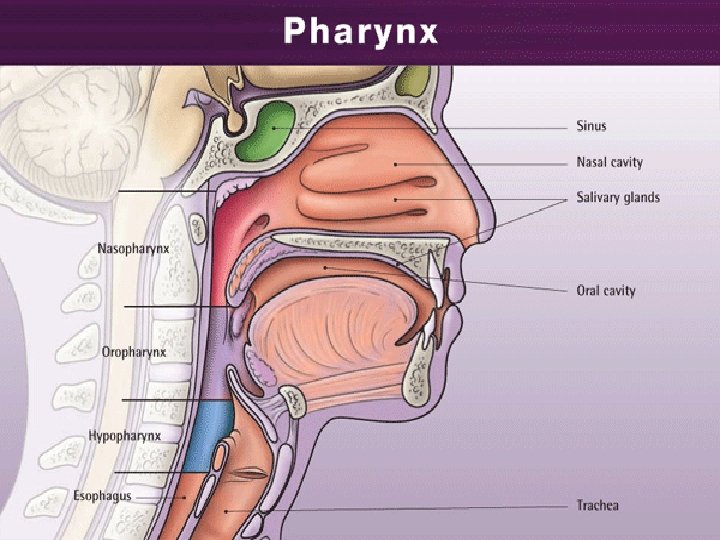 Applied aspects: Oral phase: � � Painful inflammation in the mouth and tongue=> Dysphagia Paralysis of the tongue. Pharyngeal phase: � � Acute pharyngitis Tonsillitis.