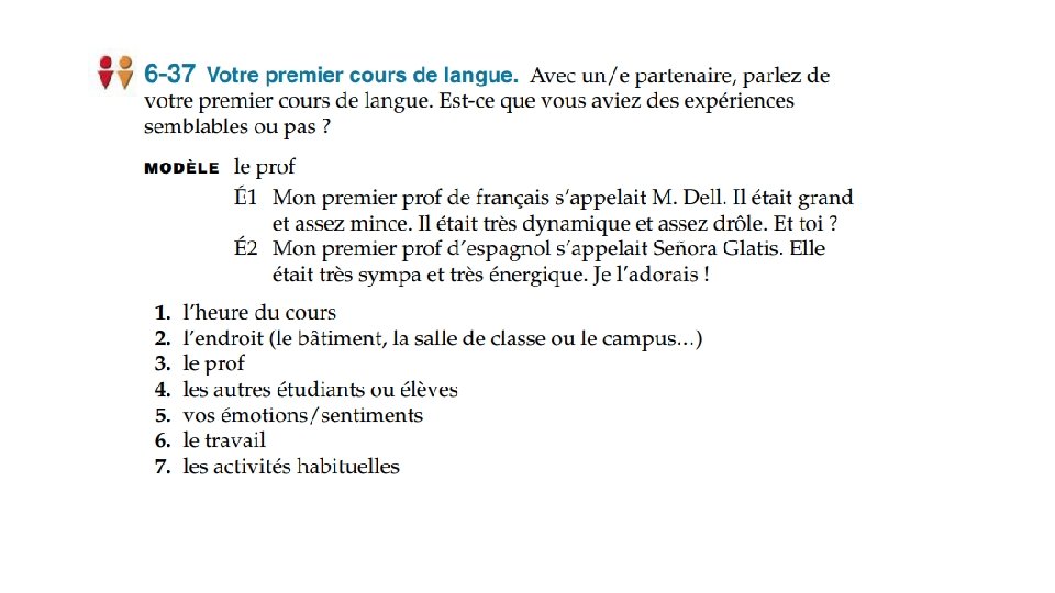 Pour faire des suggestions: Si on allait au bord de la mer? Si on déjeunait ensemble? Emploi de l’imparfait Pour faire descriptions et parler d’actions habituelles au passé: La maison de mes grands-parents était très moderne. La salle de séjour était spacieuse et elle avait des grandes fenêtres. Il y avait une terrasse sur le côté où quelquefois nous jouions aux cartes et buvions de la limonade.