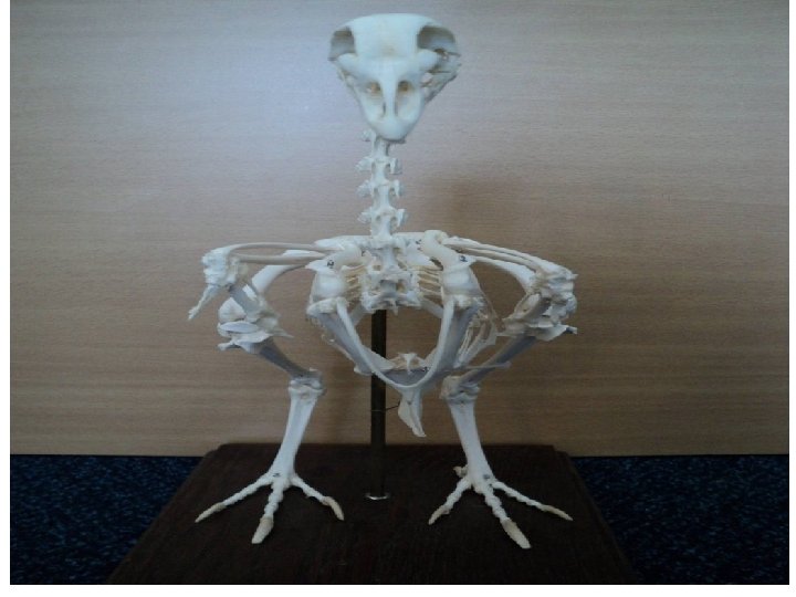 Skeleton of a Chicken 7 6 3 2 11 1 10 23 22 8 9 4 5 24 25 17 19 18 20 13 21 14 15 12 16 16 a 16 b 16 c 16 d 1. 2. 3. 4. Maxilla Eye socket Cranium Mandible (bones of the hyobranchial apparatus are shown to be protruding below the mandible) 5. Atlas 6. Axis 7. Cervical vertebrae 8. Radius 9. Ulna 10. Humerus 11. Femur 12. Patella 13. Fibula 14. Tarsus 15. Sesamoid bone (ossified tibial cartilage) in hock joint 16. Tarsometatarsal joint 17. Scapula 18. Coracoid bone 19. Ribs 20. Sternum 21. Keel 22. Ilium 23. Caudal vertebrae 24. Ischium 25. Pubis Text book of Veterinary anatomy, third edition, Dyce et al
