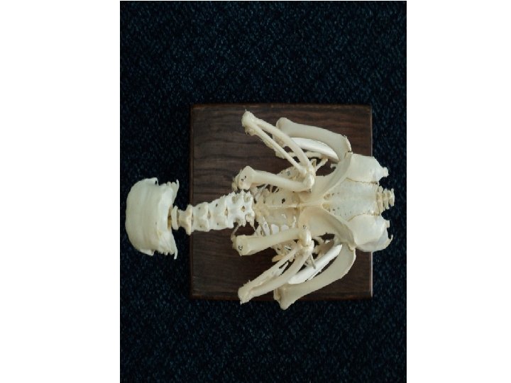 Chicken Skull 6 7 8 9 10 5 4 3 12 11 2 1 1. 2. 3. 4. 5. 6. 7. 8. Premaxilla Nasal aperture Nasal bone Lacrimal Bone Orbit Frontal Bone Parietal Bone Tympanic cavity with cochlear and vestibular windows 9. Quadrate Bone 10. Articular Bone 11. Maxilla 12. Zygomatic arch 13. Mandible 13 Text book of Veterinary anatomy, third edition, Dyce et al