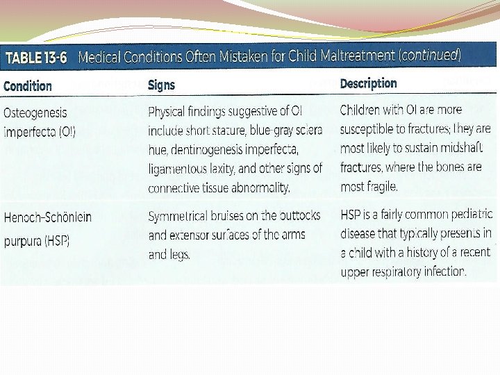 Evaluation of Child Maltreatment �Screening is systematic process �AAP – The evaluation of Suspected Child Physical Abuse helps guide a facility in developing such a protocol �Provide relaxed environment to obtain history from children and caregivers – open ended questions �Comprehensive and accurate documentation- using exact quotes - photographs