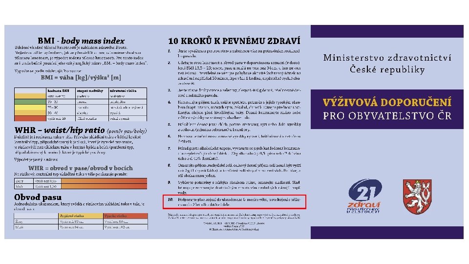 Official breastfeeding support WHO, UNICEF: • 1981 – International Code of Marketing of BM Substitutes • 1991 – Baby-friendly Hospital Initiative • 1991 – Ten Steps to Successful Breastfeeding (WHO, UNICEF) CZ: • 2007 – Standard practical instructions for BF in CZ (upgr. 2015) Childhood hygiene Breastfeeding support 19