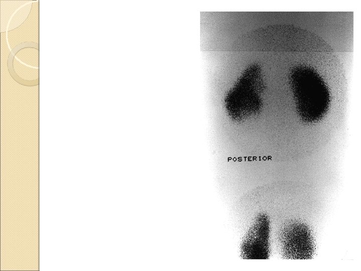 DMSA scan: Technetium-labeled Acute pyelonephritis Structural malformations of the kidney DTPA scan: Dynamic study for: Excretory Function Reflux