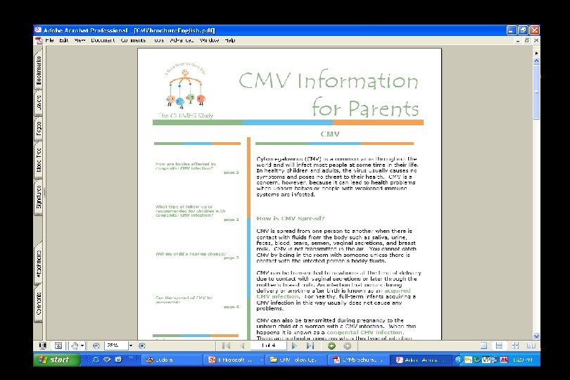 Objectives Define the long-term audiologic/otologic outcome in children with congenital CMV infection Determine the clinical validity and utility of CMV screening: Øin the detection of hearing impairment in the newborn Øin the prediction of hearing impairment with onset during infancy or in the early years of life