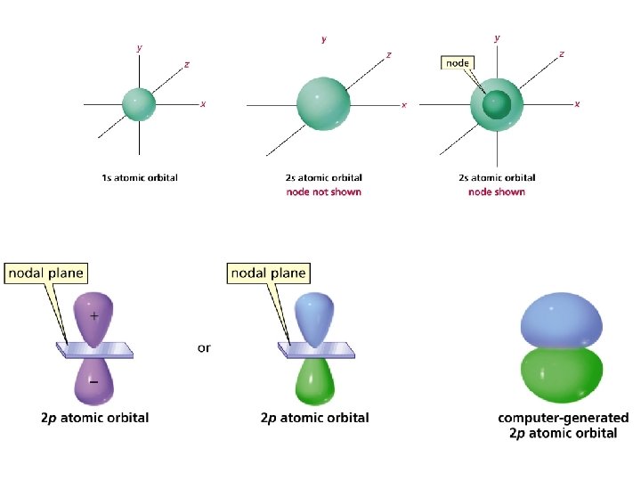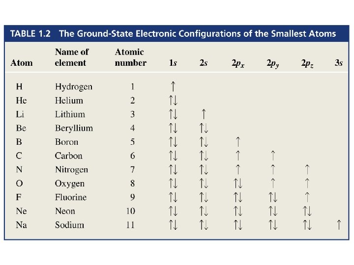 Come si distribuiscono gli elettroni in un atomo? • Il comportamento di un dato elettrone può essere descritto in termini di una equazione d’onda la cui soluzione è ψ (funzione d’onda o ORBITALE) • Il quadrato della funzione d’onda ψ2 esprime la regione di spazio attorno al nucleo in cui è massima la probabilità di trovare l’elettrone • Gli elettroni occupano GUSCI identificati dai numeri 1, 2, 3 e così via. Ciascun guscio può contenere fino a 2 n 2 elettroni (n=numero del guscio). Gli elettroni del primo guscio sono più vicini al nucleo e quindi più bassi in energia • I gusci sono ulteriormente suddivisi in sottogusci o orbitali. Esistono 4 differenti tipi di orbitali: s, p, d, f