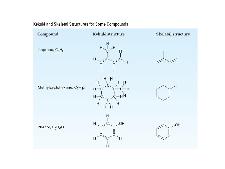 2. STRUTTURE A SCHELETRO 3 semplici regole: 1. Gli atomi di carbonio non sono mostrati, è sottinteso che ad ogni intersezione tra due linee (legami) ci sia un atomo di carbonio 2. Gli atomi di idrogeno non sono mostrati, ma il carbonio è sempre TETRAVALENTE!!! 3. Si mostrano gli atomi diversi dal carbonio