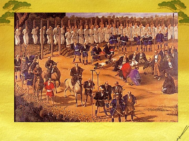 The Spread of Christianity £ Missionaries focused first on converting the daimyo and samurai £ By end of 1500’s, shogun began to see Christianity as a threat £ All missionaries were expelled and the practice of the religion was banned in 1614 £ Active persecution began and Christianity was reduced to an underground faith