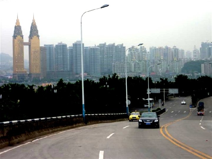 Ausgangspunkt der „Cruise“ : Chongqing Grösste Stadt Chinas und der Welt 33 Millionen Einwohner Stadtplanung mit verheerenden Folgen für Bevölkerung : - Anonyme Beton- u. Glasbauten in wenigen Jahren gebaut, zählt zu den am schnellsten wachsenden Städten Chinas - für ärmere Leute unbezahlbar, Verdrängung in Aussenbezirke - sehr starke Luftverschmutzung
