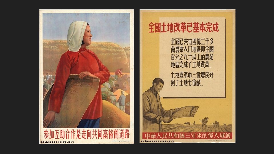 Chinese Civil War (1946 to 1949) Mao Zedong paints the war as a revolution to remove “three big mountains: ” mountains Imperialism Feudalism Bureaucrat-Capitalism Creates a united front to combat GMD, primarily made up of: Urban Workers (Few) Peasants (Many)
