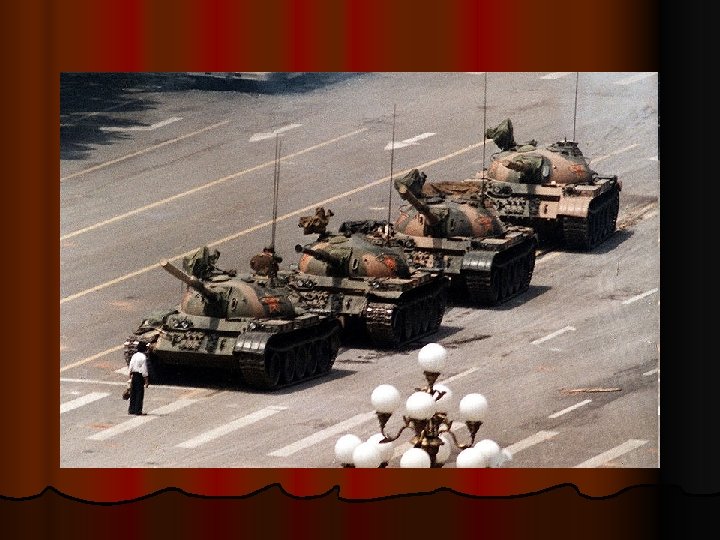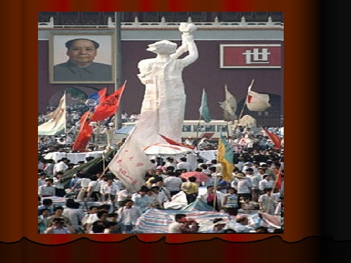 Massacre in Tiananmen Square l l l Rich and poor gap developed Western ideas flooded China, democracy was trying to take root In the Spring of 1989 100, 000 student began to protest and occupy Tiananmen Square Deng declared Martial law June 4, thousands of heavily armed Chinese troops attacked the students, killing perhaps thousands.