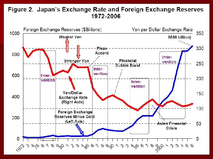 International Currency System History n Collapse of Bretton Woods, 1971 -73 n IMF 1977 Decision n Plaza Accords 1985, G 5 devalue USD n 1997, Currency Speculation in Asian Financial Crisis n Euro intro’ 1999, G 7 intervention 2000 n IMF 2007 Decision