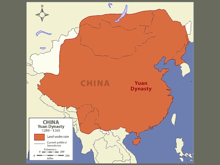 Yuan (1279 - 1368 CE) • Mongol Khubilai Khan conquers China • Economic stability and prosperity • China more open to trade and travel (Marco Polo) • Ignored Chinese traditions, replaced bureaucrats with non-Chinese • Unsuccessful attacks on Japan, corruption weakens dynasty • Peasant rebellion ends Yuan