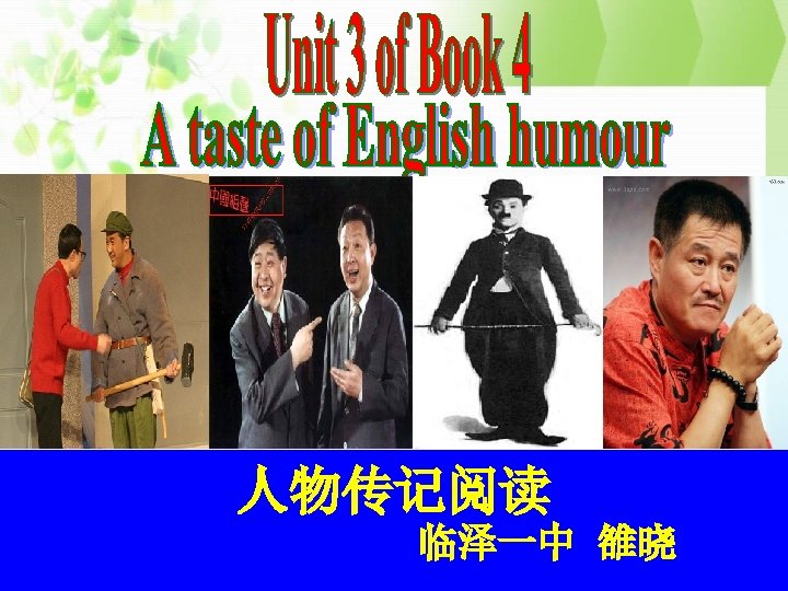 Humour is everywhere in our daily life. I hope you can be optimistic(乐观) no matter what difficulties you meet , just as Charlie Chaplin was.