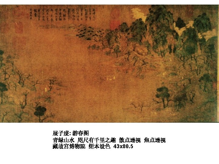 • D. Painting and History • Zhan Ziqian (展子虔, around 531 -604), whose Buddhist monastery murals had placed much influence on later painting. Spring Excursion represented his accomplishment in landscape painting.