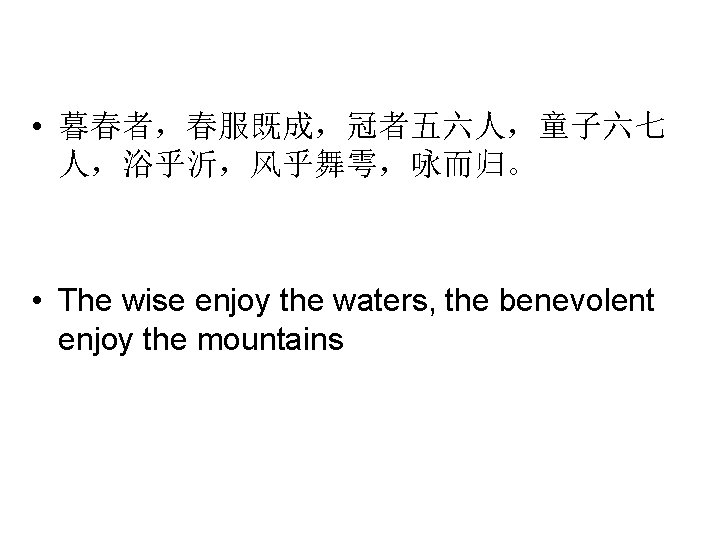 • Simonides (5 -4 century BC): Painting is silent poetry, and poetry is painting with the gift of speech. • Su Dongpo (苏东坡,11 century AD ): Tasting the poems of Wang Wei, you may enjoy paintings in them. (味摩诘诗,诗中 有画) • Su himself was praised as taking poetry as speaking painting, and painting as silent poetry. (以诗为有声画,画为无声诗)