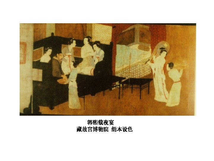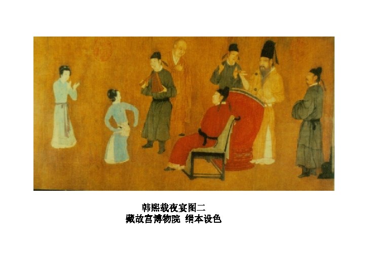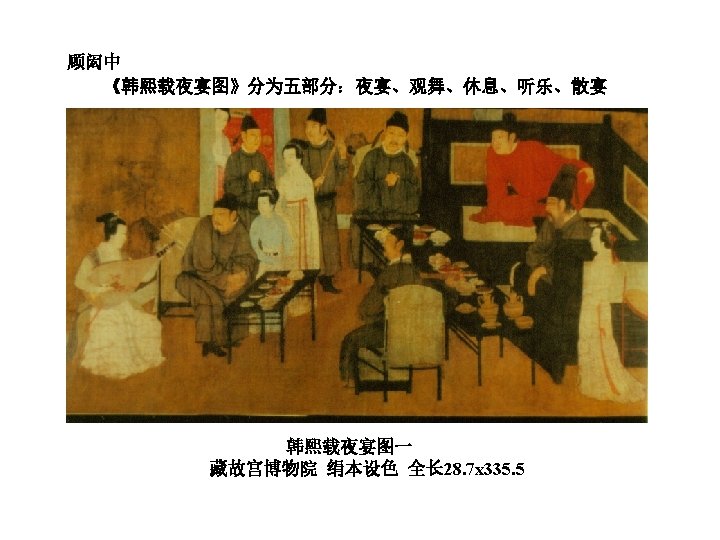 顾闳中:韩熙载夜宴图 • Gu Hongzhong: Night Revels of Han Xizai • This Five Dynasties handscroll portrays the scandalous private life of Han Xizai, senior minister to three "emperors" of the Southern Tang Dynasty in the mid-tenth century.