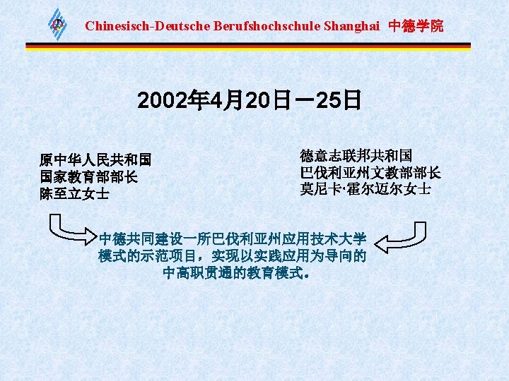 Chinesisch-Deutsche Berufshochschule Shanghai 中德学院 合作与交流Kooperation u. Kontakt