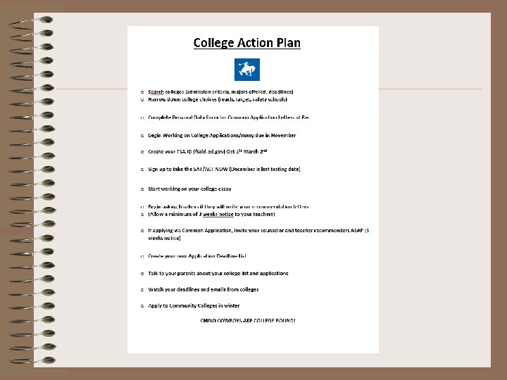Student Involvement • College campus tours • College fairs • Leadership opportunities/ Boys’ State, Girls’ State, RYLA, ASB, Renaissance/LINK Crew, etc • Sports • Volunteering • Community service • Church involvement