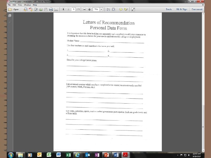 • Military – Training in specific skills – Educational benefits • Vocational Schools – Intensive training and experience in specific trades • Workforce – Resumes and letters of recommendation – Make contacts now! Go to the Career Center and meet with Mrs. Prescott to look into all of the above options!